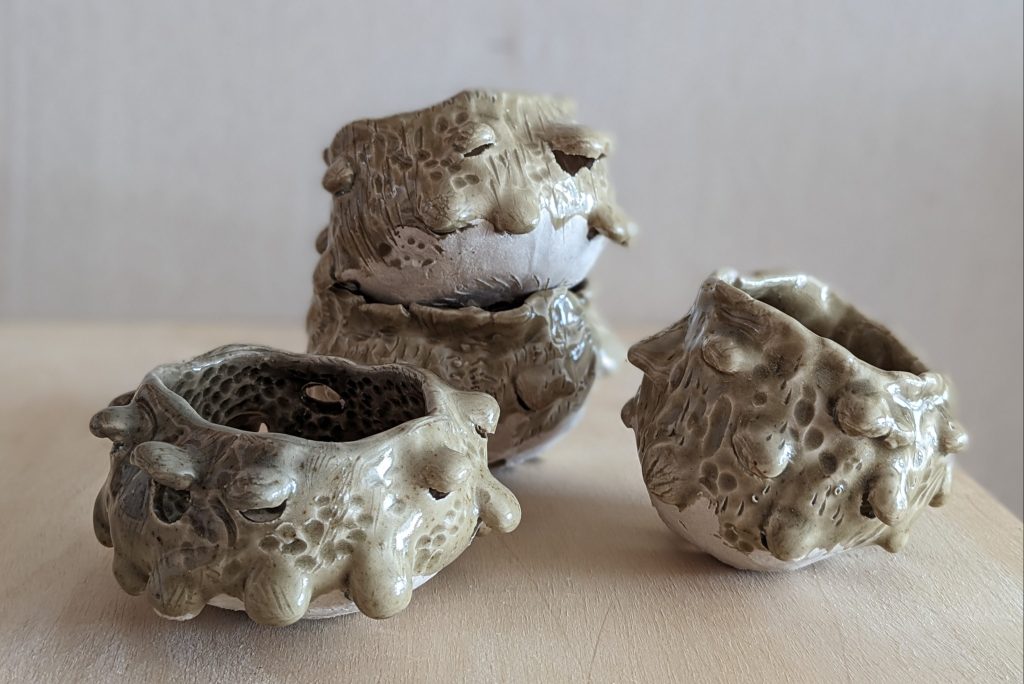 Cone 10, organic and nature-inspired ceramic sculpture and wheel-thrown pottery.